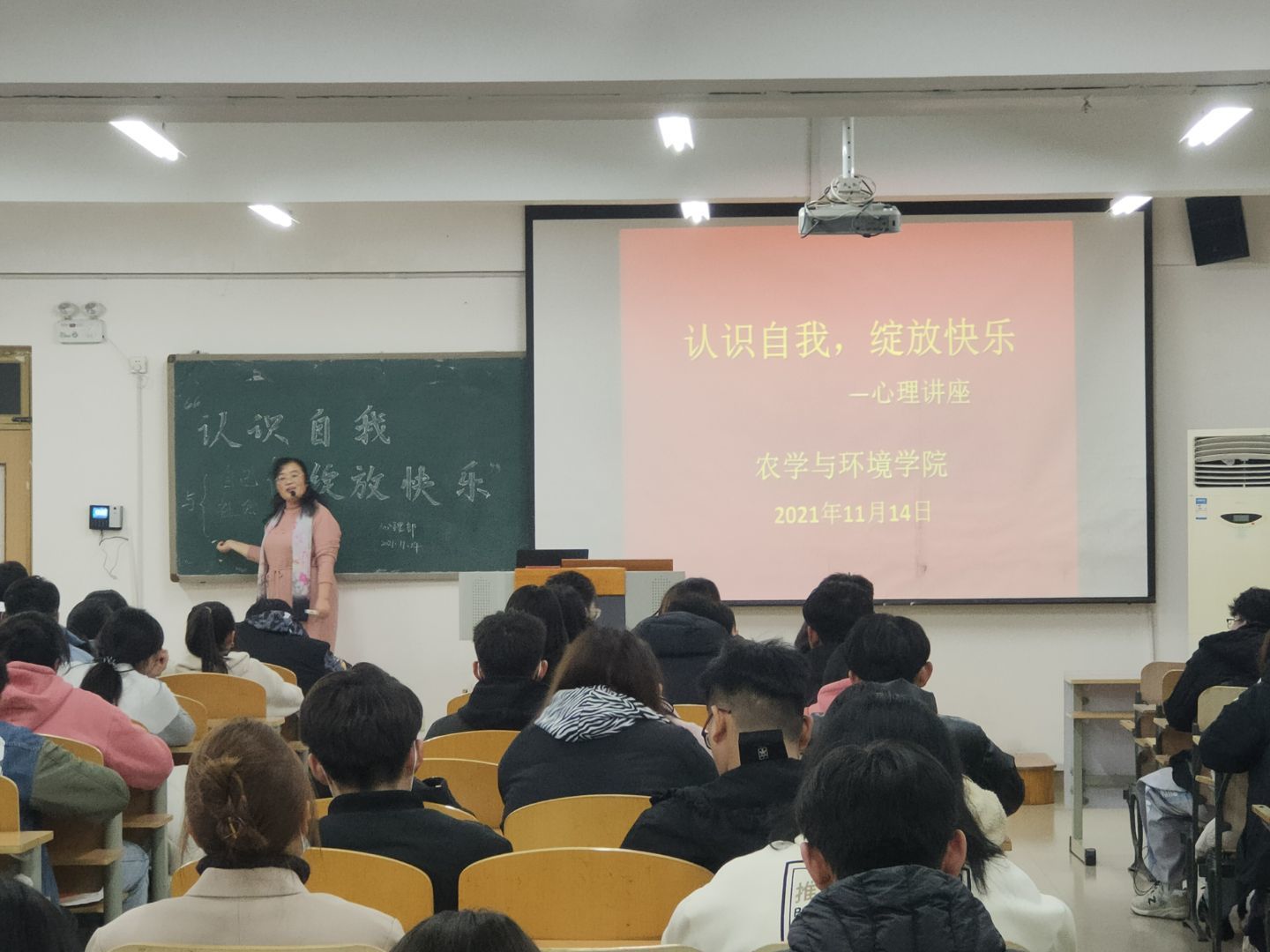 为让同学们学会更好地认识自我,提升自我意识、具备良好的人格特质,11月14日,农学与环境学院开展“认识自我,绽放快乐”主题讲座活动。