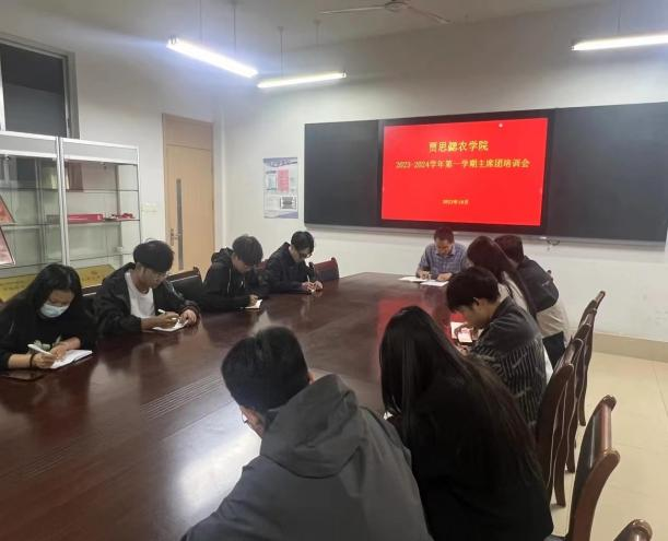 会上,李建永书记提出,主席团应做好分工,确保未来工作开展,在日常生活中注意遵守校规校纪,起到榜样带头作用;刘建伟书记强调,团干部应积极进取、谨言慎行,正确处理工作关系,大胆创新、谨慎实践;高凤老师指出,班干部们应对自己严格要求、分清工作主次,保质保量协助老师完成日常工作,营造更好学习环境;员工干部们秉持尽职尽责的态度,认真倾听书记、老师的要求,并表示将在未来学习生活中约束自我,为农公司更好发展做出贡献。