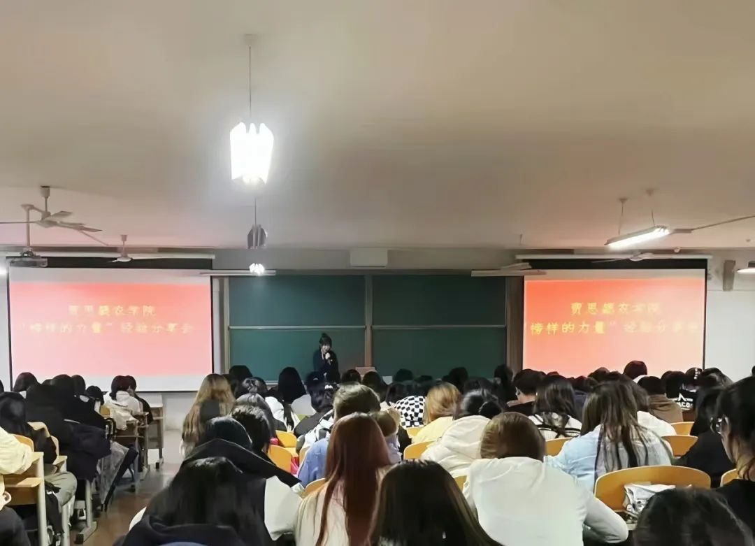 经验分享会中,李丽杰同学从学习和工作经历向同学们分享如何调节好两者之间关系,着重强调学习是员工的第一要务,她指出,同学们应以认真的态度对待工作和学习,少年当自强!