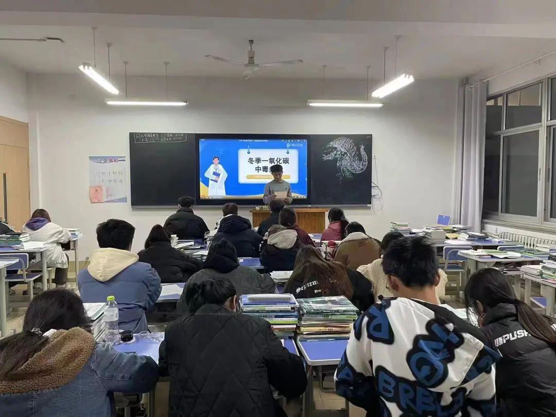 为了让同学们更直观的了解一氧化碳中毒的危害,各班组织观看了“如何预防一氧化碳中毒”主题视频,视频详细讲解了一氧化碳中毒原理和泄露后应如何自救等内容,引起了同学们对一氧化碳中毒的重视。