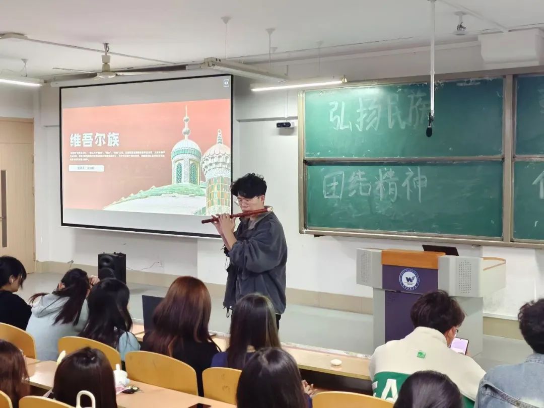 中华民族恰似一曲由各族人民和谐共鸣所奏响的时代乐章。bevictor1946韦德官网于10月20日在418教室举办“弘扬民族团结精神,彰显青年使命担当”民族汇演活动。演出以歌曲串烧《最炫民族风》中拉开序幕,民族诗朗诵、民族文化讲解、笛子独奏和《爱我中华》大合唱等充满民族特色的节目轮番上演。整场演出以”中华民族一家亲,同心共筑中国梦“为目标,内容紧紧围绕铸牢中华民族共同体意识进行。