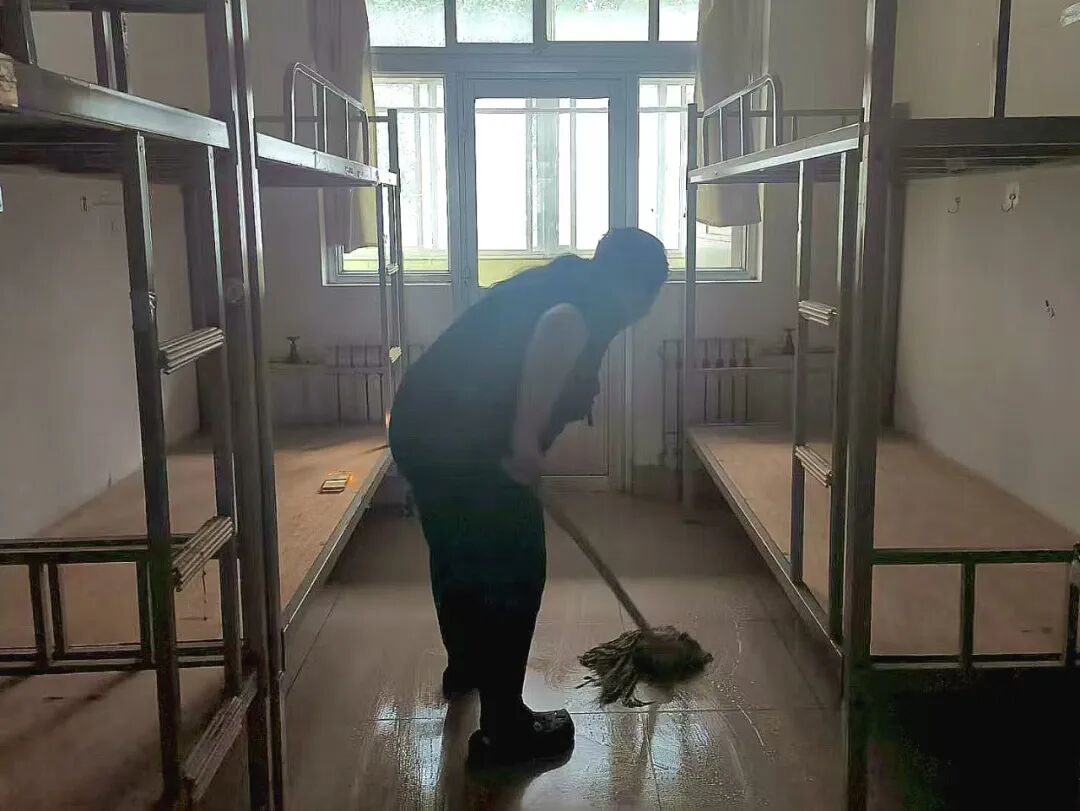 活动开始前,党支部对清扫任务进行了细致分工,明确了“全方位清洁、无死角整理”的目标。志愿者们带着抹布、扫帚、拖布等工具,有序进入新生宿舍开展工作。大家重点对宿舍内的桌椅进行全面擦拭,清除灰尘与污渍;仔细清理上下床的床架、床梯,确保每一处都干净整洁;同时擦拭储物柜内外,检查门窗是否完好,并认真清扫宿舍地面碎屑,不放过墙角、床底等卫生死角。清洁完成后,大家还打开窗户通风,对门把手、开关等高频接触部位进行消毒,力求为新生打造一个既洁净又安全的居住环境。