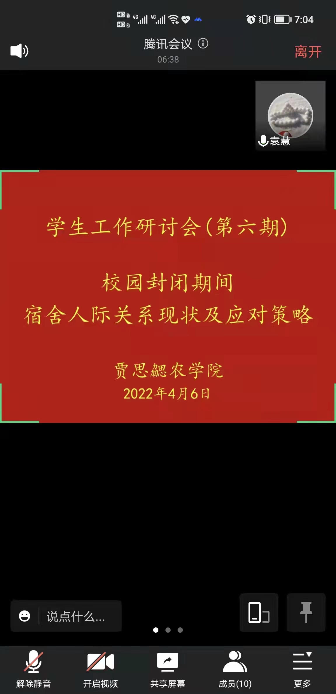 为进一步加强辅导员队伍建设,提高辅导员个人业务能力和职业素养,4月6日晚,bevictor1946韦德官网在308会议室开展校园封闭期间宿舍人际关系现状及应对策略专题线上研讨,会议特邀山东商业职业技术公司团委副书记,第三届山东高校辅导员职业能力大赛一等奖获得者袁慧书记交流经验。农公司党支部书记刘杰主持会议,农公司全体辅导员参加本次研讨会。