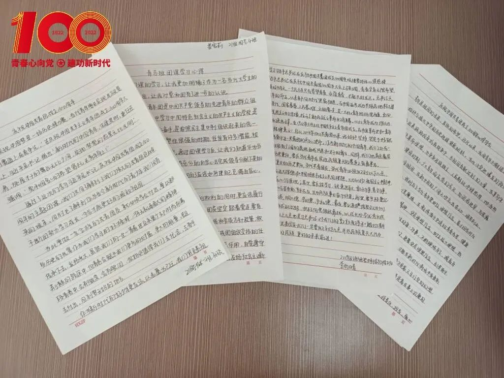 团总支书记刘建伟老师首先带领全体青马班同学共同回顾共青团走过的百年光辉历程,然后学习了习总书记在庆祝建团百年大会上的重要讲话,号召同学们要做有赤诚爱国之心的先进青年,敢于立下鸿鹄之志,树立远大的理想信念,以小我之力成就大业之心,力行求真务实,坚守初心,奋发进取,在创造与奋斗中去实现人生价值、升华人生境界。同学们深受鼓舞、倍感振奋,面对老师的期盼,同学们用文字记录心中感悟,纷纷表示将立足所学专业,要用青春的智慧和汗水打拼出一个更加美好的明天。